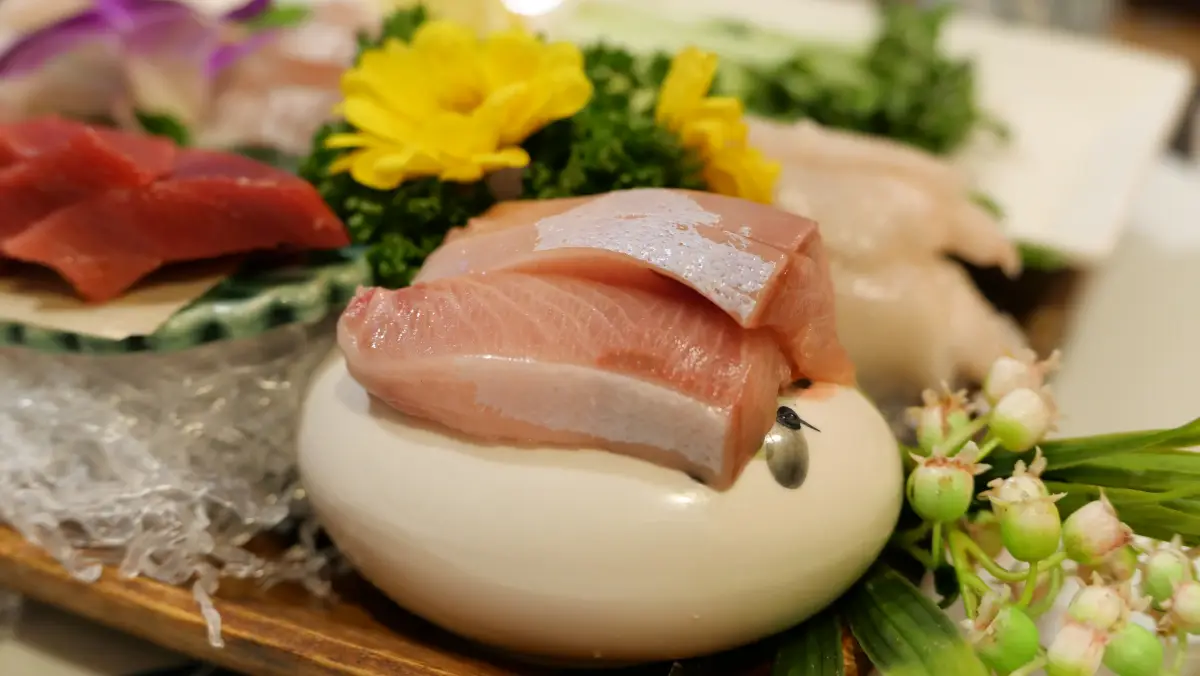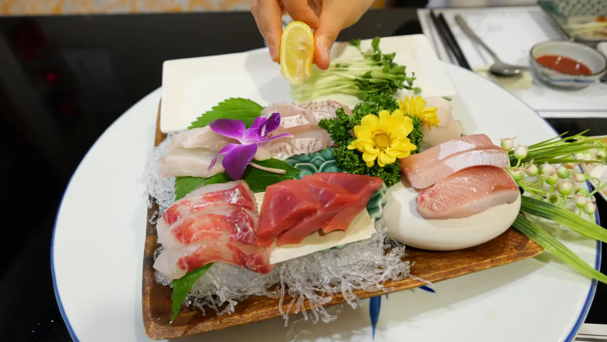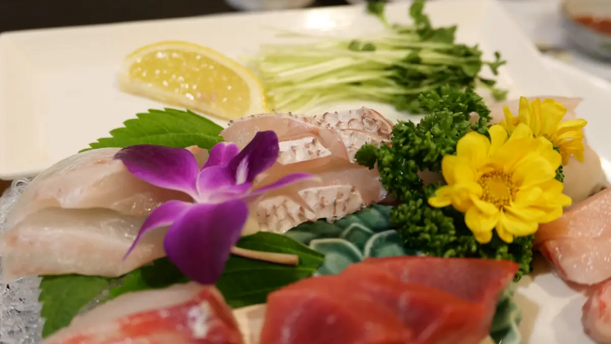 좌측 상단부터 시계방향으로 광어, 도미, 광어, 밀치, 참치, 방어의 구성으로 제공되었다. 횟감의 두께는 사진에서 보이는 것처럼 한입 가득 차게 하는 두께로 한입 먹으면 입속에서 금방 사라지게 하는 게 식감이 아닌 쫄깃쫄깃한 숙성회의 맛이 온전히 입안 가득 한참을 즐기게 해 주게 끔 하는 두께와 구성이었다.