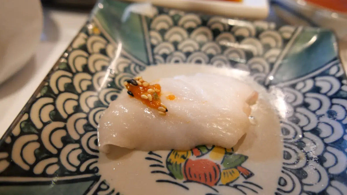 그 뒤로 각종 스키다시와 초밥 등등이 나오며 우리는 슬슬 배가 불러와지고 이제 매운탕이나 식사류를 주문하면 될 것 같다 싶어서 홀에 식사를 주문하였으나 그 이후로도 각종 스키다시가 계속 밀려 들어왔다. 하지만 고스이의 스키다시는 옥수수콘등이나 구색 맞추려고 내어주는 여느 일식집의 스키다시와는 달랐다.