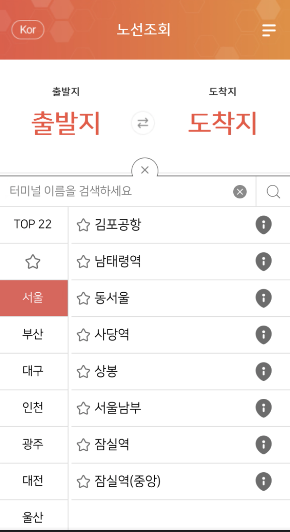 출발지/ 도착지 선택 후