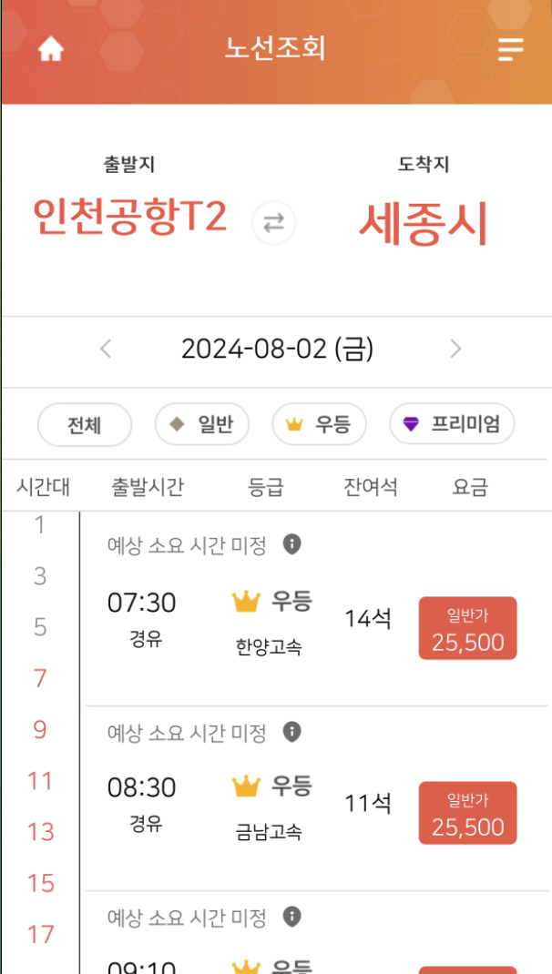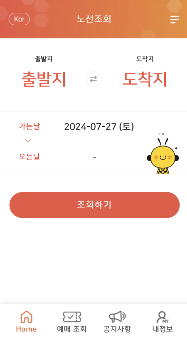 출발지/ 도착지 선택 후